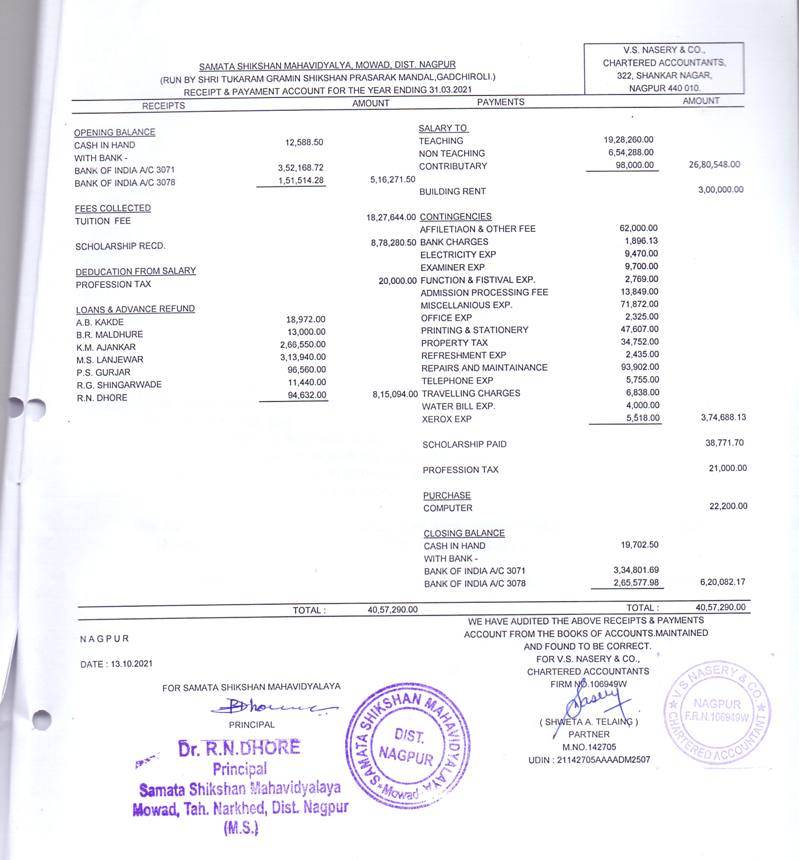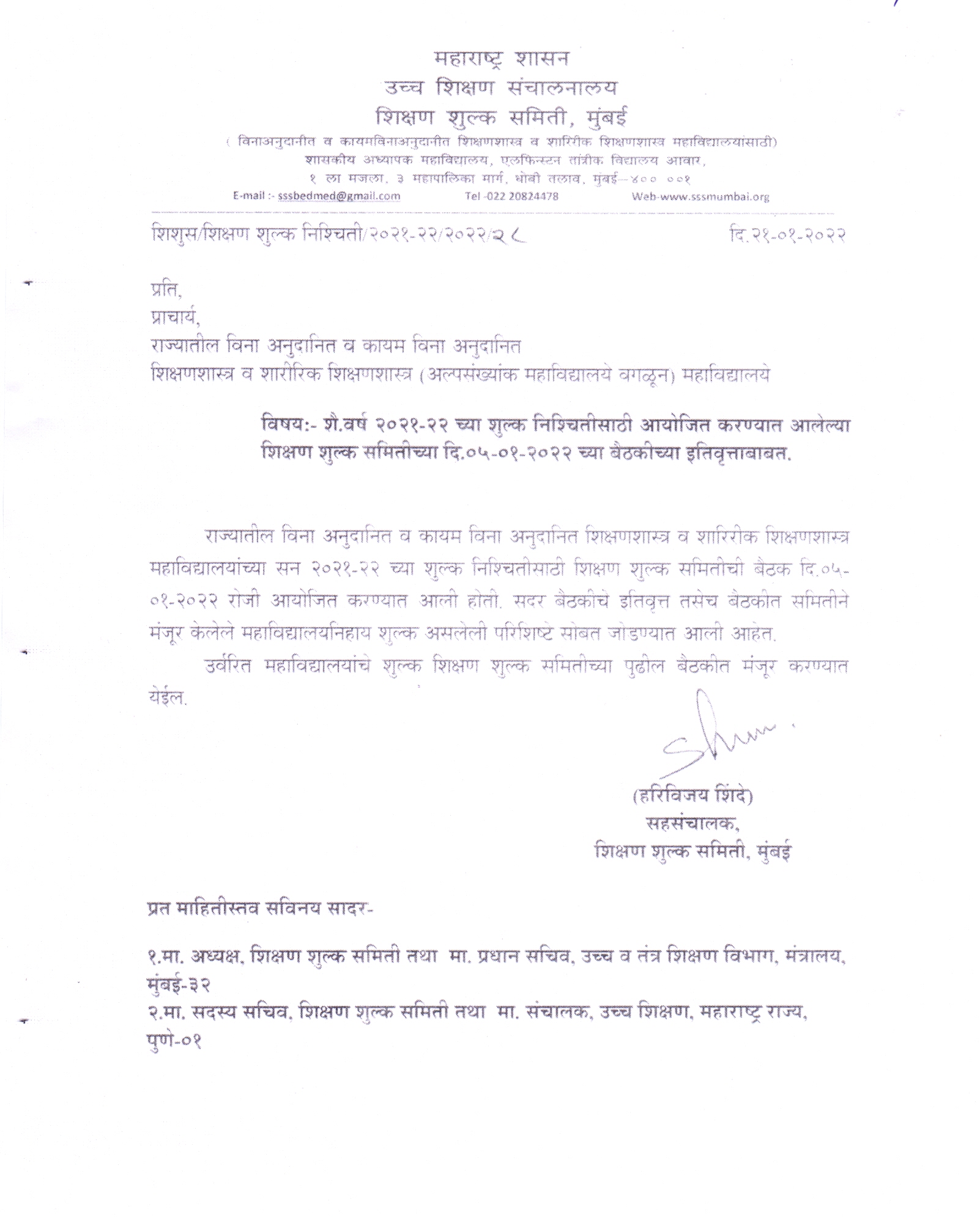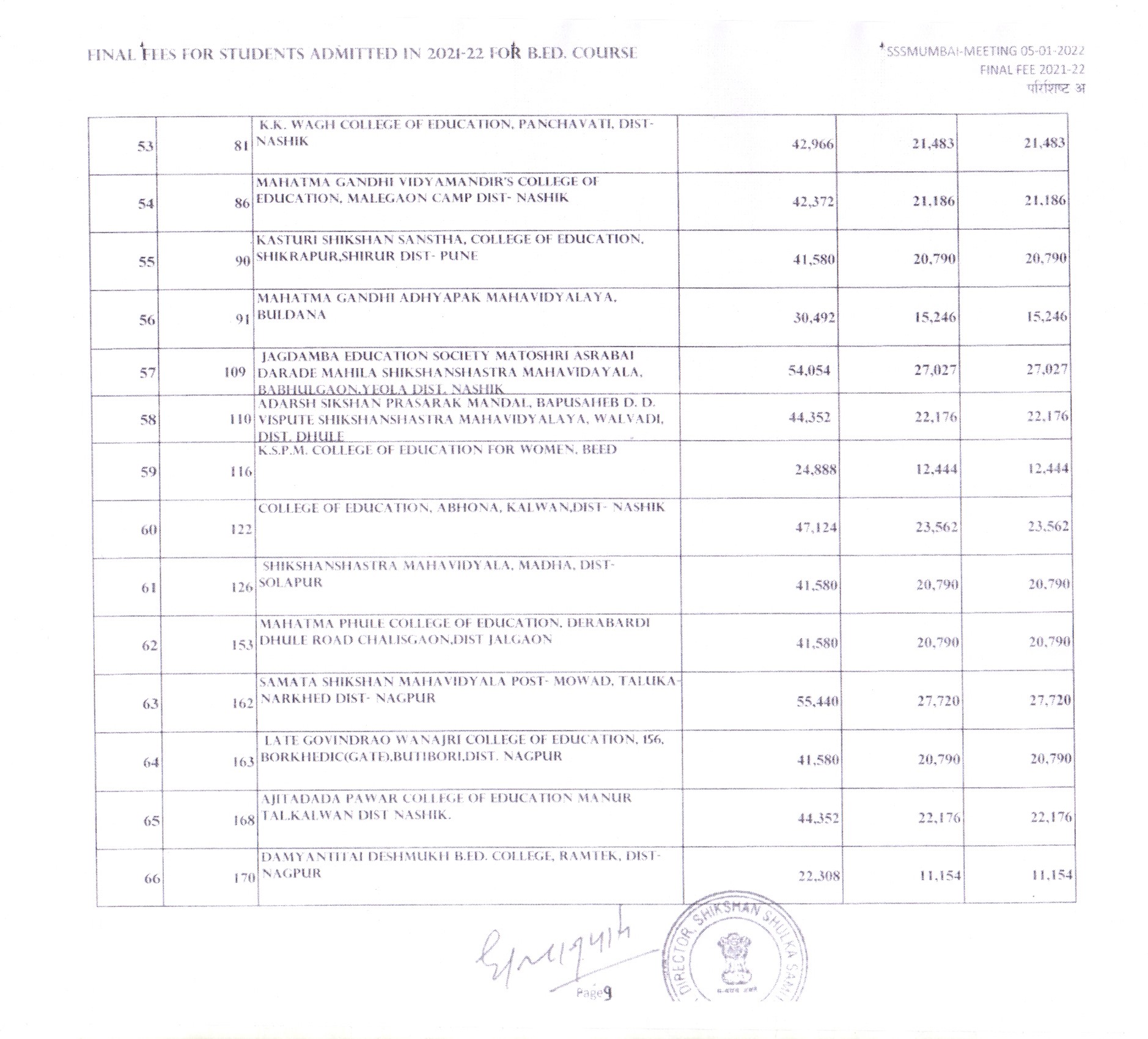 Recognition order (A) WRC, NCTE, Bhopal, order No WRC, APW 2007/123292/15/141067 Dt. 31.05.2015 with Annual in take 50 students ( Single Unit ) & duration of course is 2 years. with Marathi Medium.