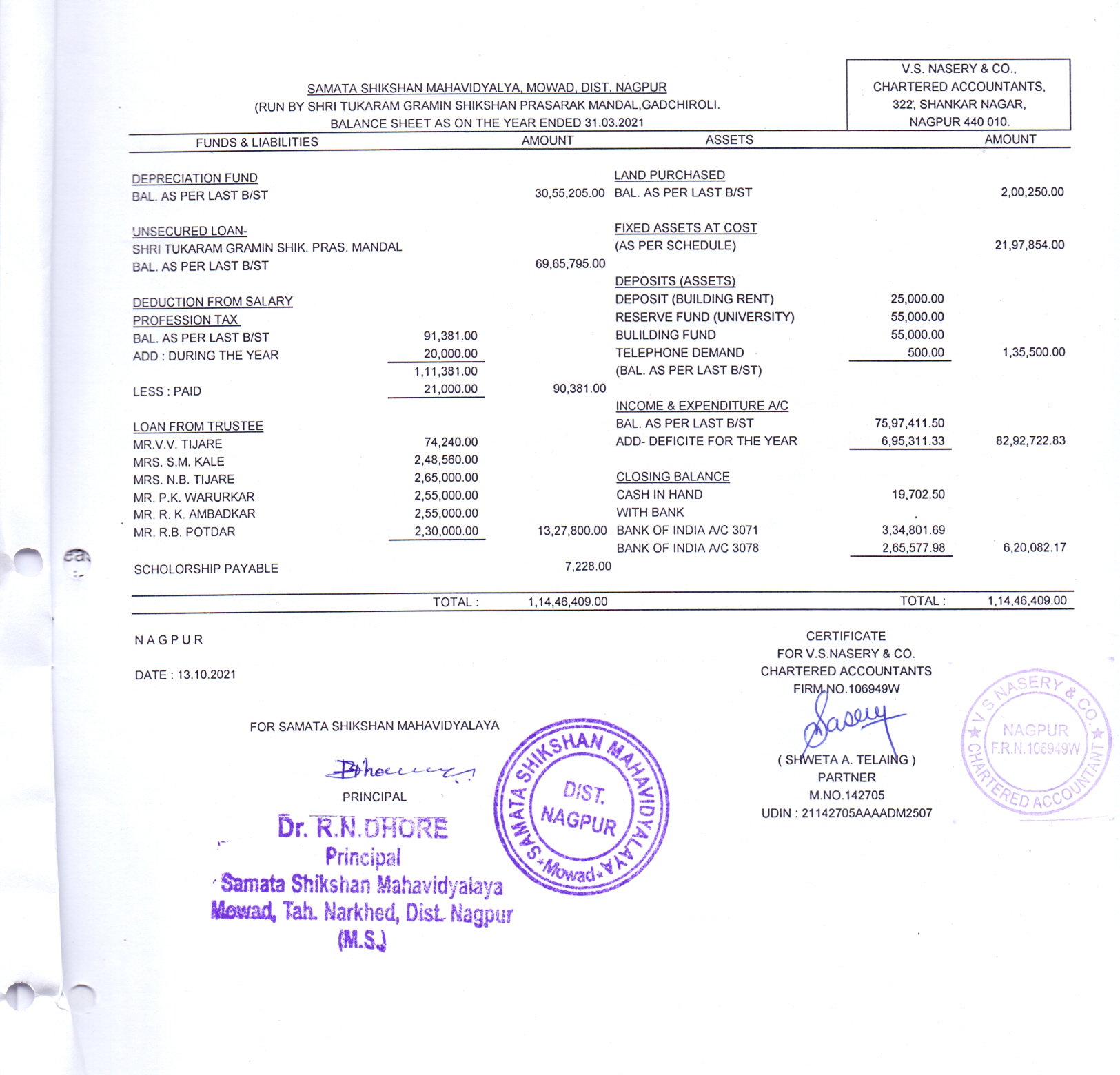 (C) Affiliating Boby. R.T.M. Nagpur Univercity, Nagpur letter No.372 Dt. 29.11.2007.